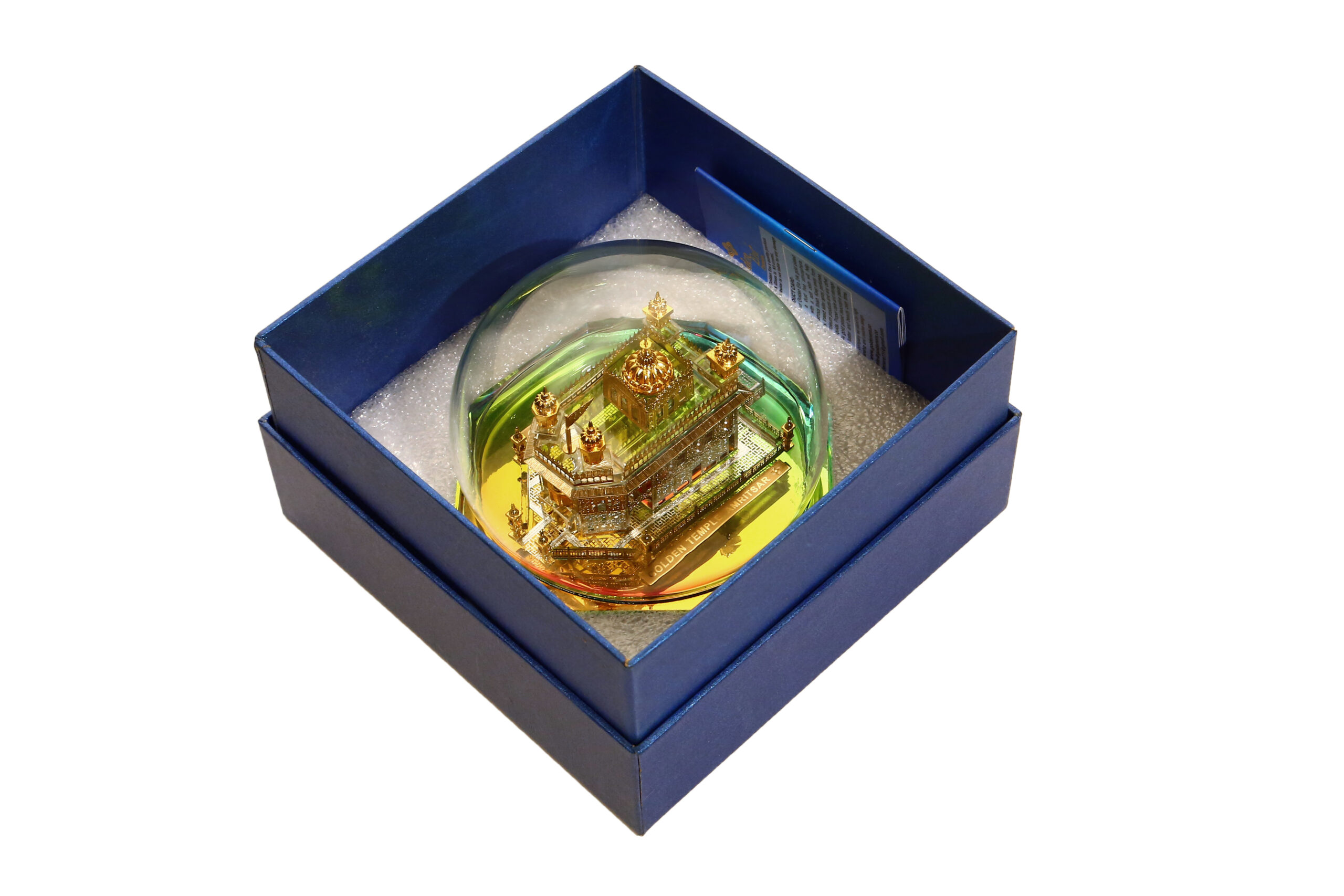 The Golden Temple, one of India’s sacred locations, is depicted on this exquisitely handcrafted idol by Sikh Essentials. It is covered by a round shaped clear glass cover on top and has a stunning square-shaped transparent glass base with four gold-plated legs on each corner of the base that keeps it firmly in place. This 24k gold-plated idol is an excellent decorative piece and can be displayed on mantels, tables, car dashboards, home temples, etc.