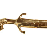 This horse hilt kirpan from Sikh Essential is 36 inches long. Beautifully crafted from golden stainless steel with 24 gold plating on it, it comes with a brass chain attached to the sheath. The blade of the kirpan is unsharpened, so it cannot be used as a weapon. One of the most beautiful kirpans you’ll ever see, ideal for an Indian wedding.