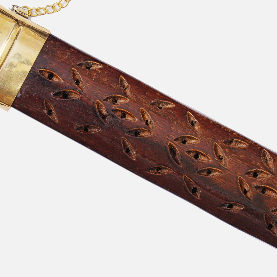 - Decorated with the pierced holes Wooden sheath